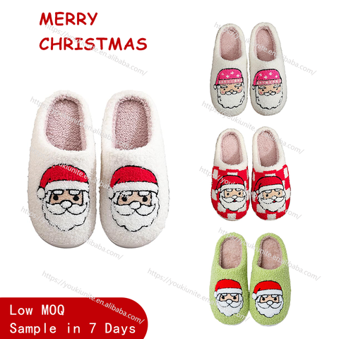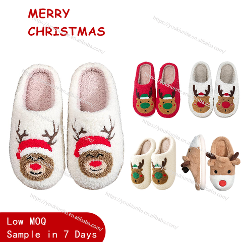 Winter Soft Cozy Holiday Indoor Bedroom Fluffy Warm Christmas Slippers Santa Claus Xmas tree Reindeer Slippers for Women Men