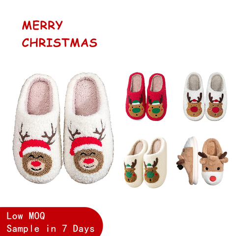 חורף כותנה חמימה בבית לחם קטיפה מלועזי קריקטורה רקמה איילים איילים סנטה xmas עץ חג המולד נעלי בית חג המולד
